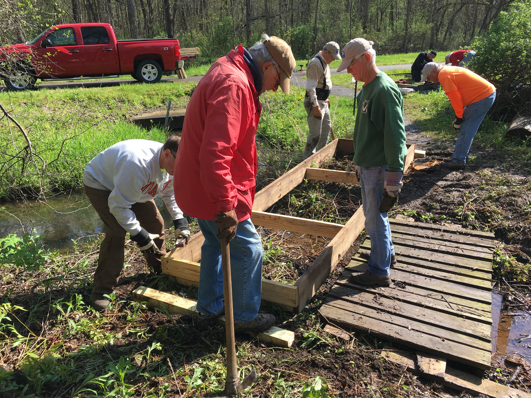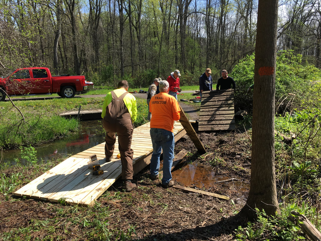 Replacing a bridge on the orange trail behind the Egypt Town Center plaza.